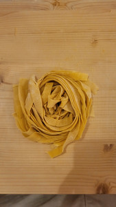 And now for the real work I came for: making the pasta! Flour the eggs, knead, roll, fold, cut... Pretty fun, but wow, if you have to do that for several people? It's definitely busy.😅 Because we've been busy for about 40 minutes now, and that's for one person. Can you imagine how much time you need for a whole restaurant?😂